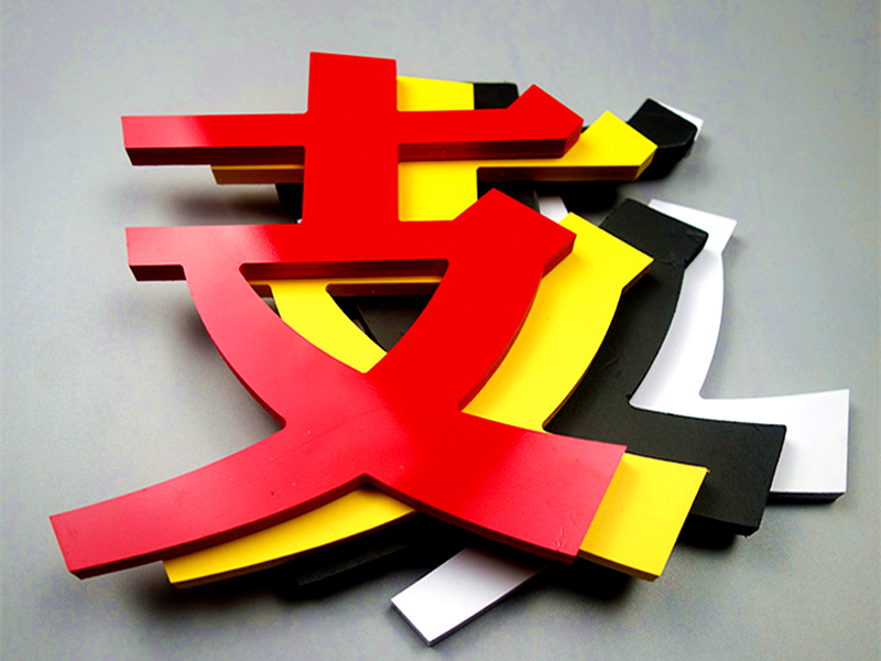采用PVC发泡板雕刻的广告字,价格实惠、立体感强,一般做PVC板本身的颜色:白、黑两色,喷漆效果不如原色好。